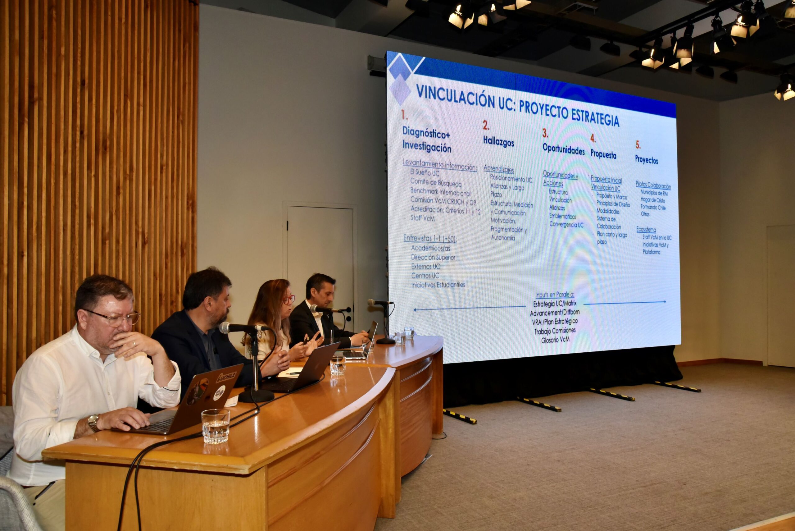 In the first panel, the experiences of four universities were presented: Francisca Barros, representing the Pontifical Catholic University (UC), presented the "UC Community Engagement Strategy Project"; Guillermo D'Elía, from the Austral University of Chile (UACH), shared the "New Community Engagement Policy"; Fabián Retamal, from the University of Chile (UChile), shared the "Extension Activities Feedback Strategy"; and Enrique Riquelme, from the Catholic University of Temuco (UCT), referred to the "UCT's Community Engagement Experience with the Pedro de Valdivia Sector of Temuco".